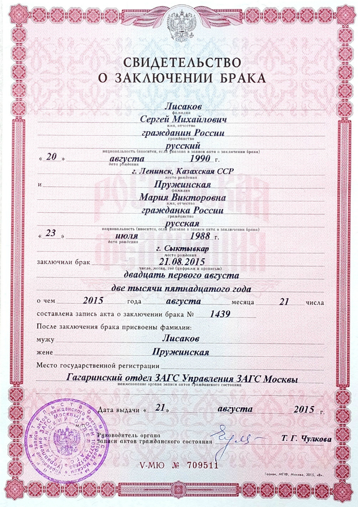 Решение о регистрации брака