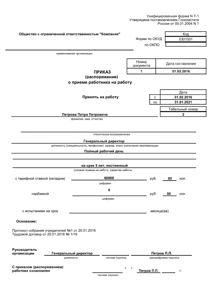 Приказ о приеме на работу